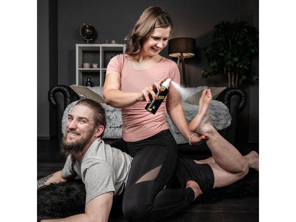 Żeby FAKSAVER mógł potraktować smród z nóg niczym Chuck Norris przestępcę, znajdziesz w nim dwa główne składniki, które zagłuszą najcięższe piżmo męskich nóg. Spirytusową podstawę zmieszaliśmy z olejkami eterycznymi z czerwonej pomarańczy i tymianku. Nie tylko zapobiegną one powstaniu brzydkiego zapachu ale też nadadzą stopom woń przyjemniejszą od naturalnej.