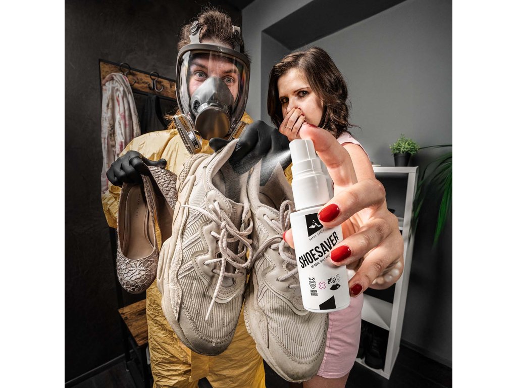 Cały dzień w ruchu, wracasz do domu no i klops! Buty wyślą powitanie zanim zdążysz powiedzieć „jestem w domu”. Dwunastogodzinna zmiana, ciężki trening lub maraton zakupów – wszystko, co trzymasz w butach, wydostanie się jak dżin z butelki i zamieni otoczenie w strefę zagrożenia. Nie ma znaczenia, czy jesteś drwalem, czy baletnicą. Buty potrafią namieszać każdemu. Na szczęście istnieje ShoeSaver, bezkompromisowy zabójca zapachu butów.