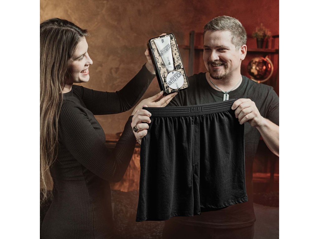 Zestaw prezentowy Antistick + Antisweat + luźne Boxers by Calm B w puszce